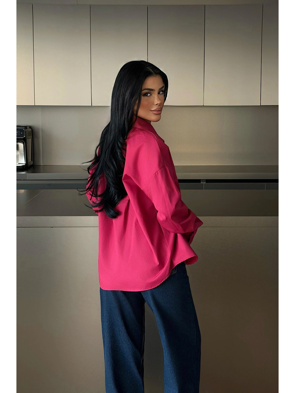 Dámska oversized košeľa v sýtom ružovom odtieni, ktorá dodá outfitu výrazný, no stále elegantný akcent.