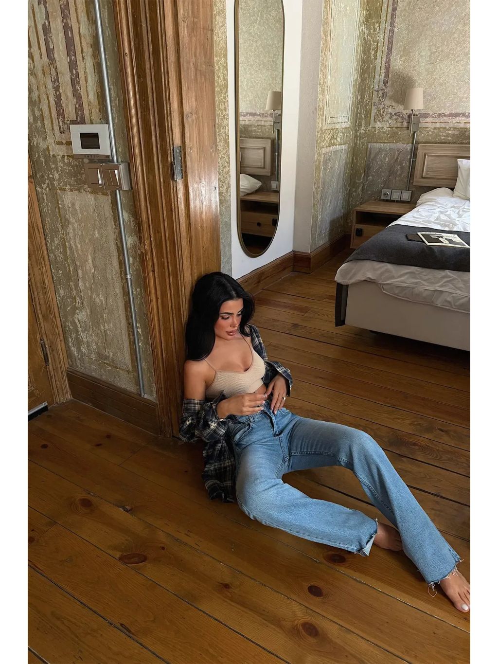 Modelka meria 160 cm, váži 50 kg a má miery 80–62–93 cm, na sebe má veľkosť 34. Odporúčame zvoliť bežnú veľkosť.