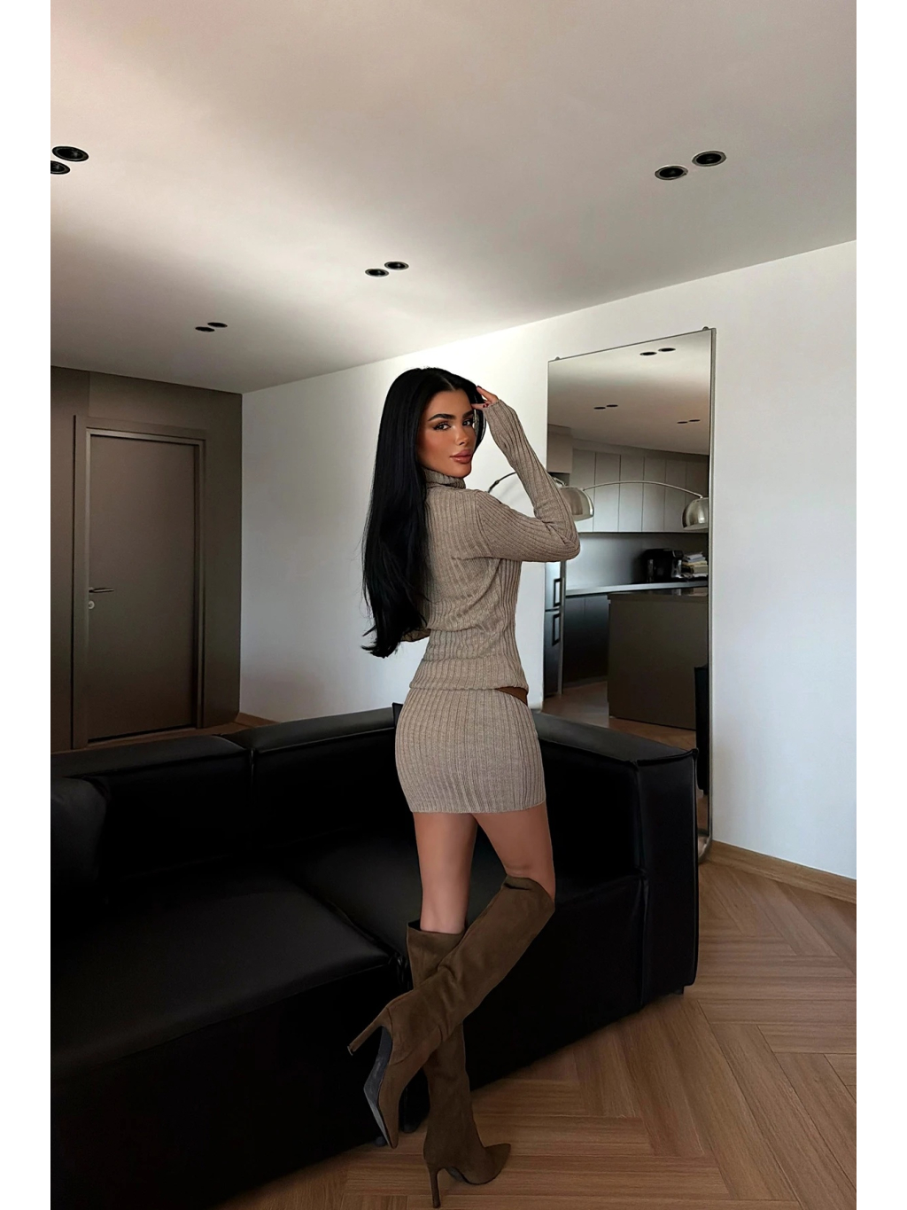 Materiál je příjemně pružný, měkký na dotek a pohodlný na celodenní nošení. Šaty lze snadno kombinovat s kozačkami, kotníkovou obuví i teniskami podle zvoleného stylu. Skvěle fungují samostatně, ale i jako základ pro vrstvení.