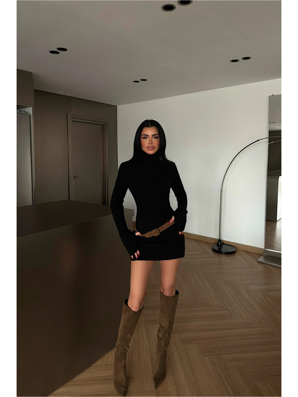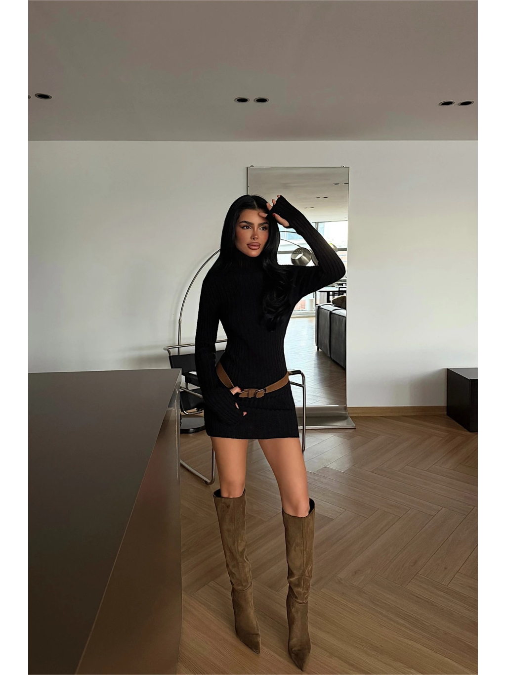 Čierne žebrované pletené šaty se stojáčkem – ZURIA