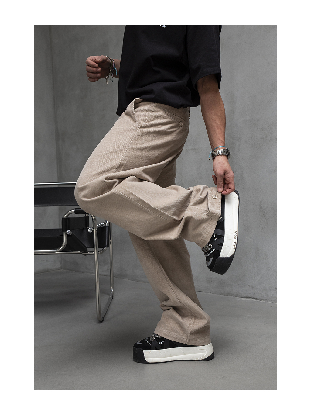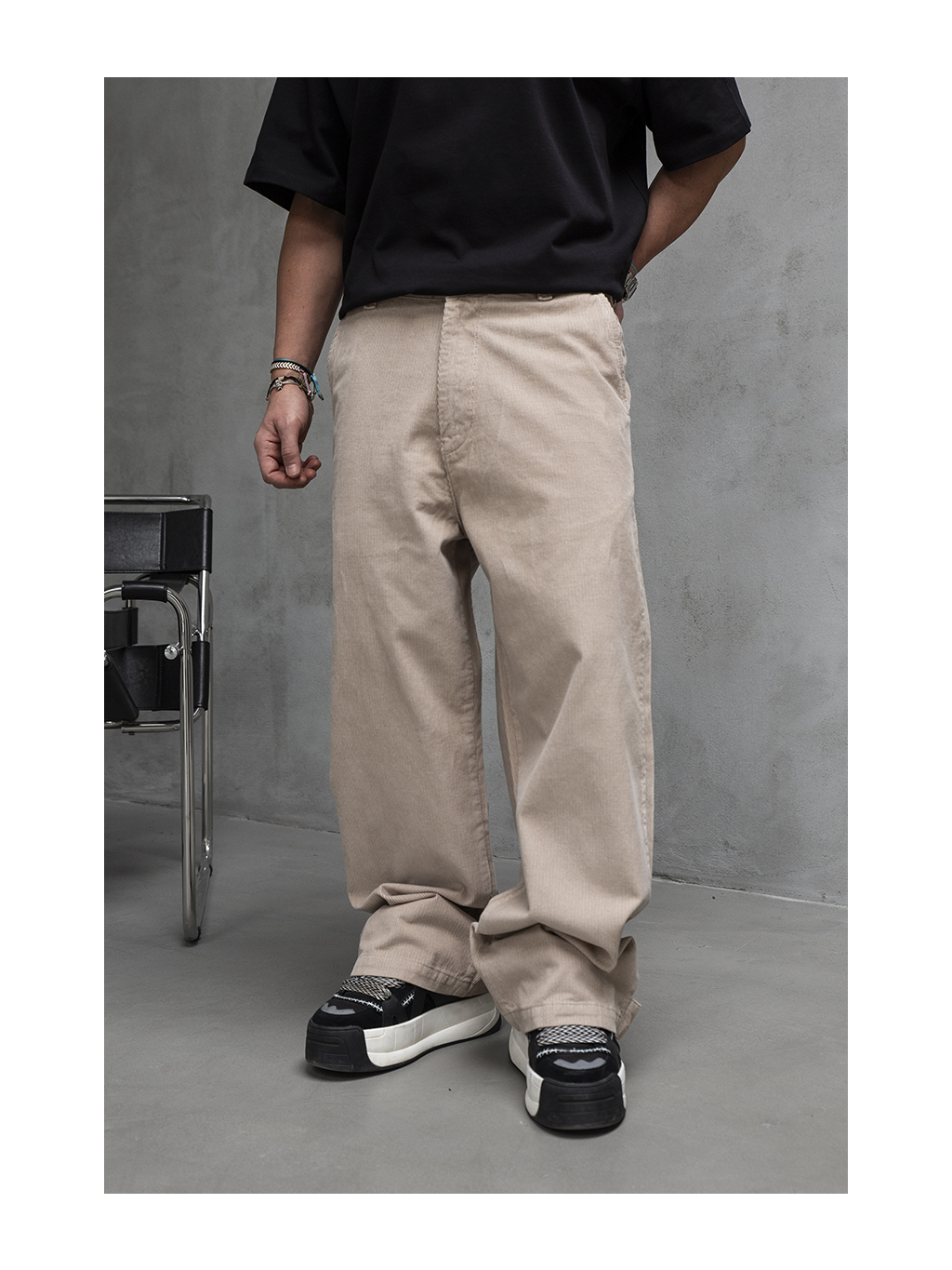Materiál pôsobí pevne, no zároveň mäkko, vďaka čomu rifle prirodzene splývajú a vytvárajú typický baggy efekt pri chôdzi aj státí. Svetlý béžový odtieň dodáva modelu čistý a moderný vzhľad, ktorý sa ľahko kombinuje s tmavými aj svetlými vrškami.
