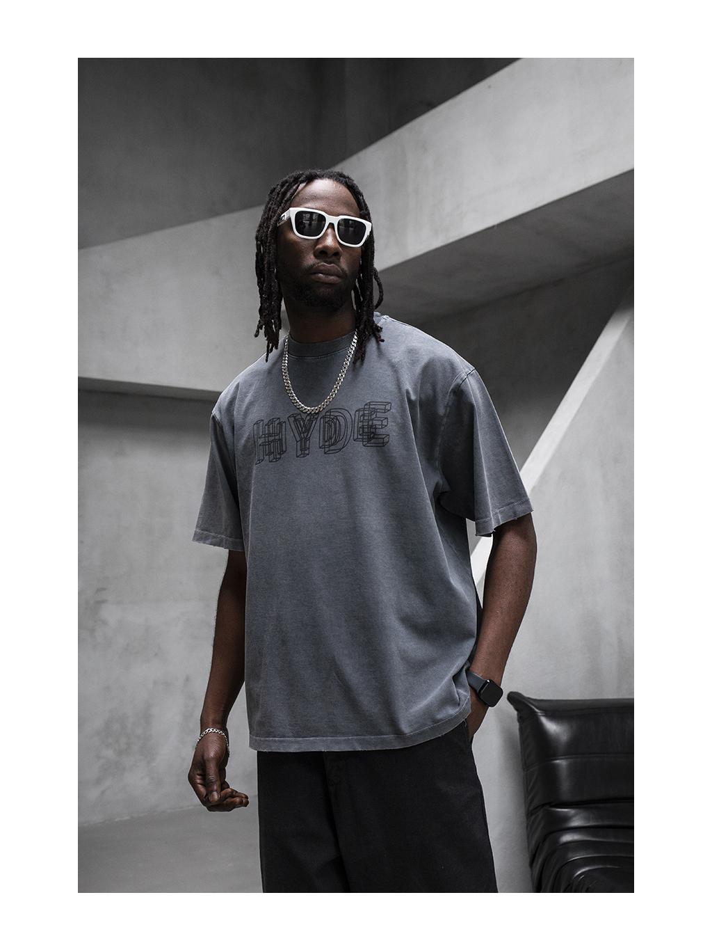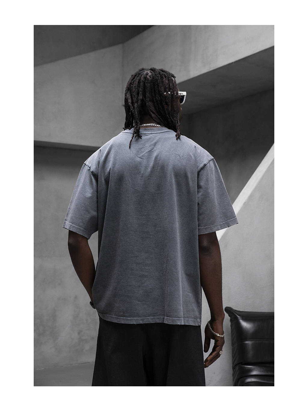 Antracitové oversized tričko s washed efektom a výrazným streetwearovým charakterom.