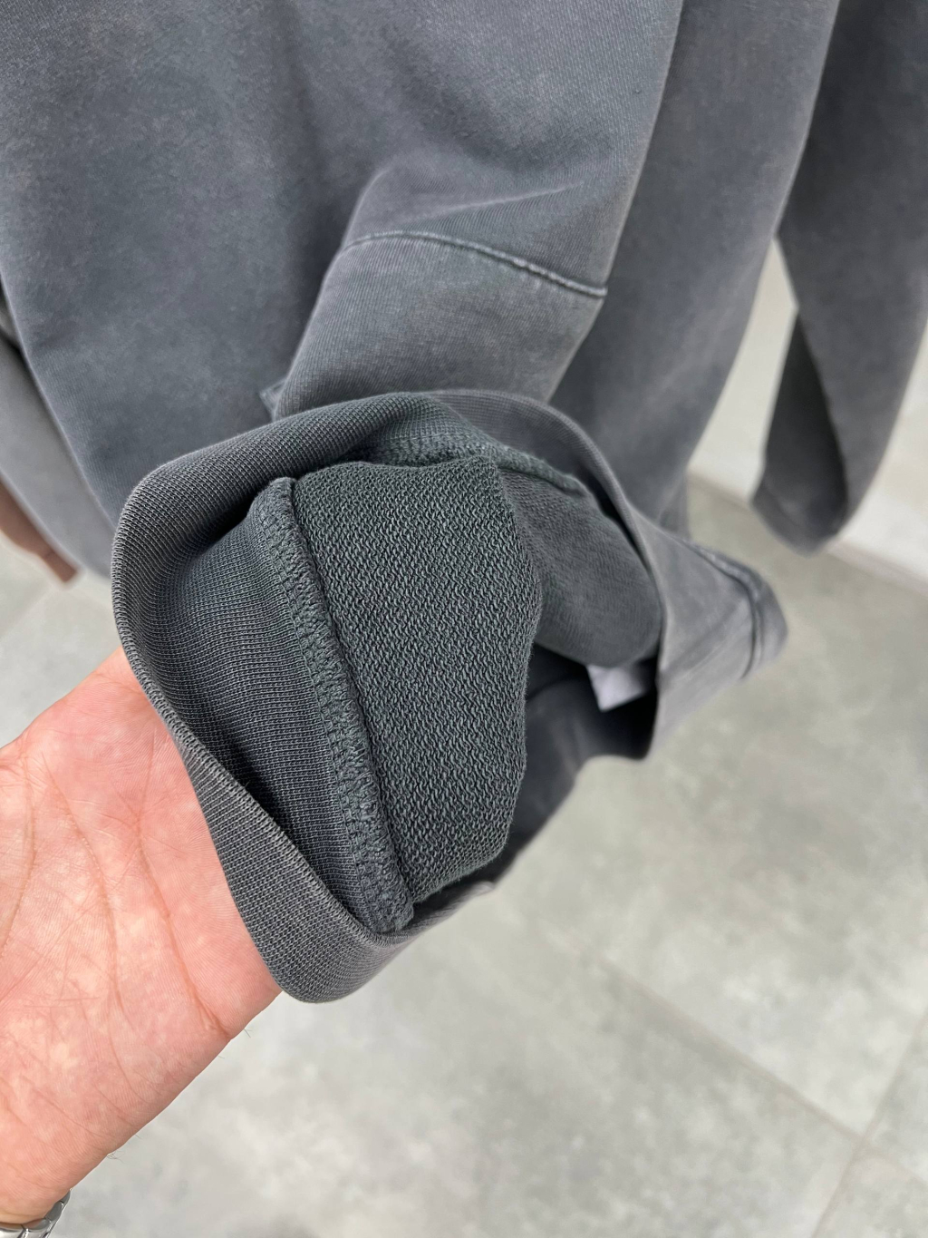 Táto oversized mikina s kapucňou v pranej sivej farbe ponúka nadčasový vzhľad podporený washed úpravou, ktorá vytvára jemne spraný efekt a dodáva mikine hĺbku a prirodzený charakter. Svetlý tón pôsobí čisto, minimalisticky a ľahko sa kombinuje s ostatnými farbami.