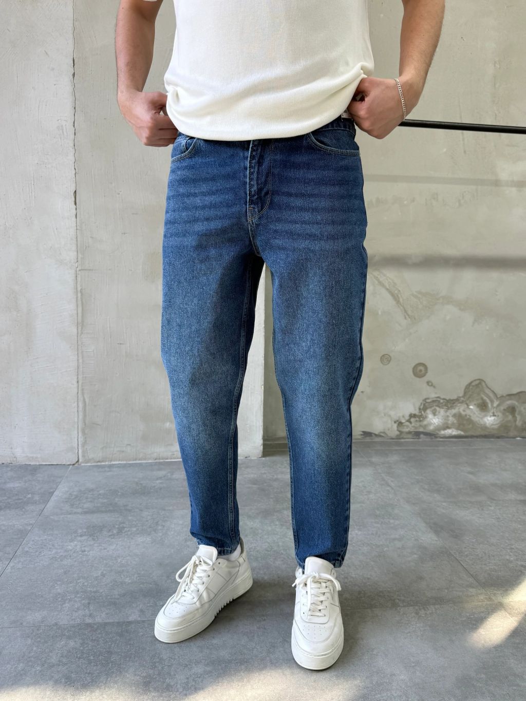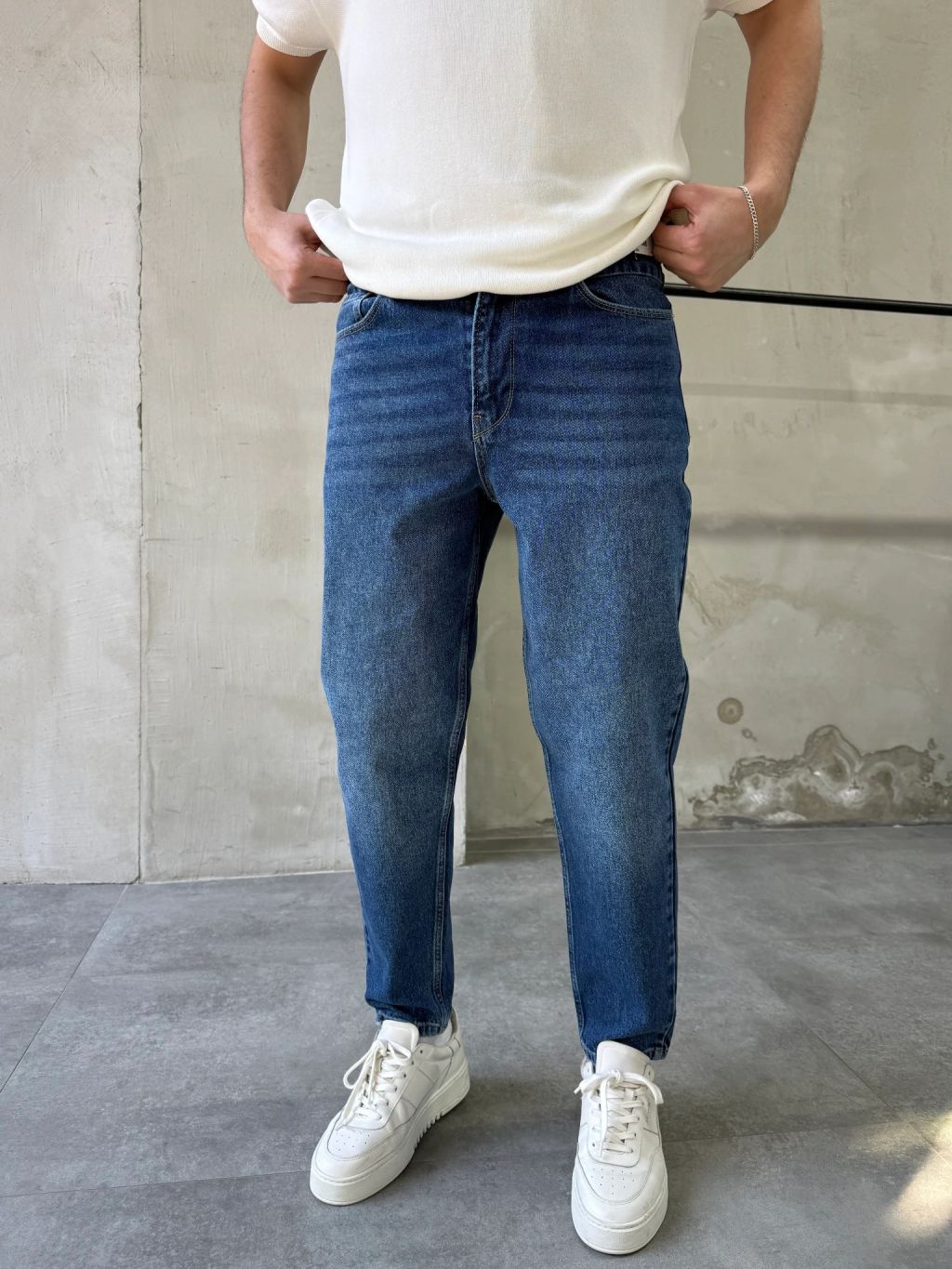 Tieto rifle v klasickom stredne modrom odtieni predstavujú ideálny základ každodenného outfitu. Vďaka jemnému vyšisovaniu v oblasti stehien pôsobia prirodzene a moderne, bez toho aby boli príliš výrazné – presne ten typ riflí, ktoré ľahko zladíš s čímkoľvek.