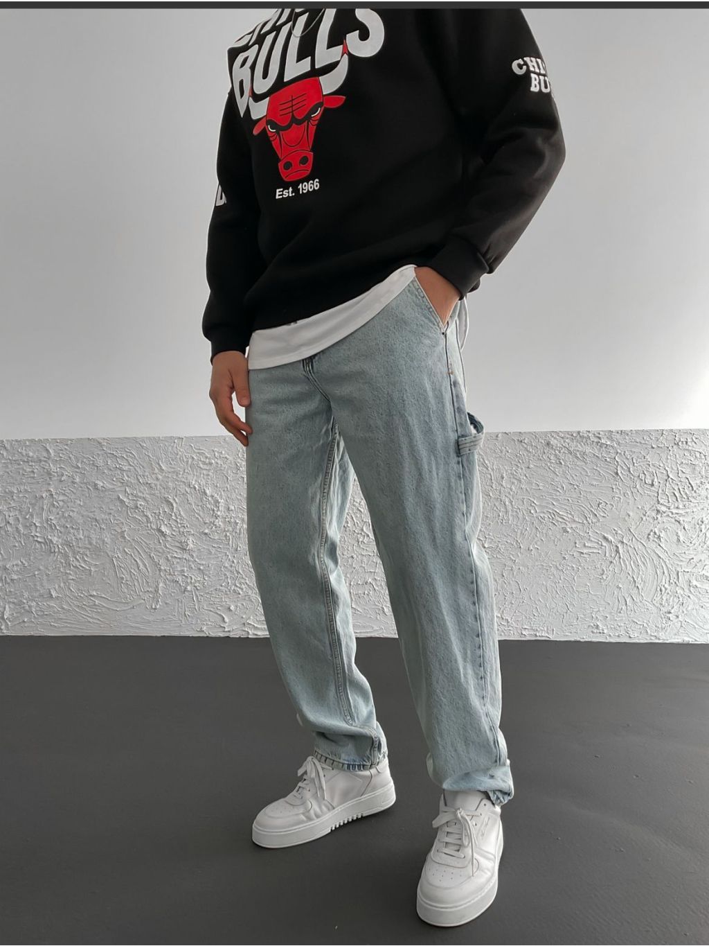 Svetlomodré rifle s jemným vintage wash efektom v uvoľnenom strihu relaxed tapered fit.